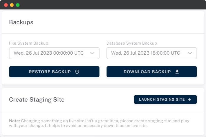 BionicWP offers a top-notch backup system that ensures the safety of your website. With daily backups, you can rest assured knowing your data is protected, and you can restore your site anytime hassle-free. What sets us apart is our separate environment storage, meaning backups are stored at a different location from your site, adding an extra layer of security. Trust BionicWP to keep your website safe and always ready for unexpected challenges.