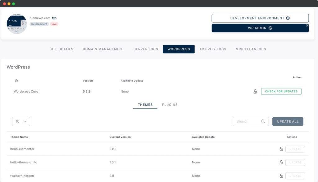 BionicWP keeps your sites core, theme, plugins all up-to-date via a manual process after which we manuall verify the site is working. This sounds crazy but we believe its the best way to do WordPress site management. Managed+.